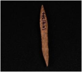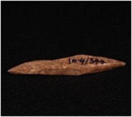 | Description / विवरण | Point of bone with an intact tips, brownish smooth surface. |