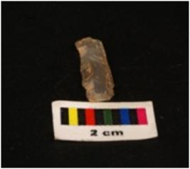 | Description / विवरण | Parallel sided microlith blade with cutting edges, blade scars and ridge on dorsal surface, broken ends. |