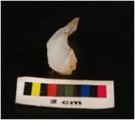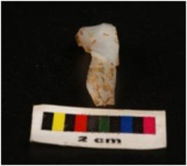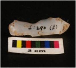 | Description / विवरण | Chalcedony parallel sided blade with a single thick ridge near the distal end, triangular cross section. |