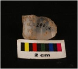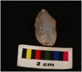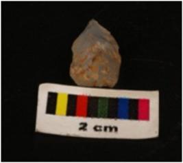 | Description / विवरण | Microlithic blade with use-wear marks on cutting edges, prominent mid-ridges on dorsal surface, bulb on proximal end with triangular section. |
