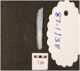 | Description / विवरण | A chalcedony blade, blade scars on the surface, platform on the proximal end and sharp working edge. |