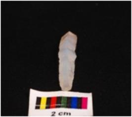 | Description / विवरण | Parallel sided blade made up of chalcedony stone, two ridge on dorsal surface ventral surface is smooth with prominent bulb at end, edge are retouched. |