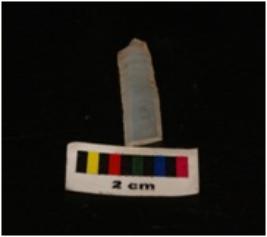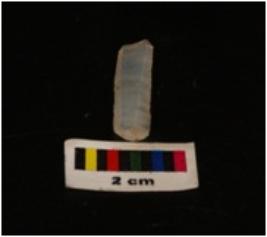 | Description / विवरण | Parallel sided microlithic blade with use-wear marks on cutting edges and two prominend ridge on dorsal surface, bulb on proximal end trapezoidal in section. |