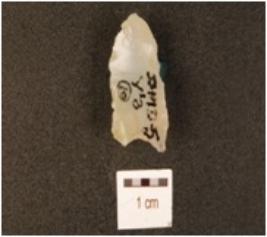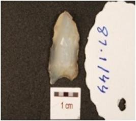| Description / विवरण | A chalcedony natched arrow head, flake scars on the surface and use marks on working edges. |
