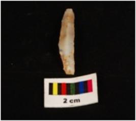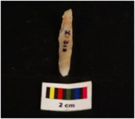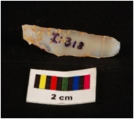 | Description / विवरण | Parallel sided microlith blade with prominent mid ridge on dorsal and use wear marks on cutting edges. Triangular in section. |