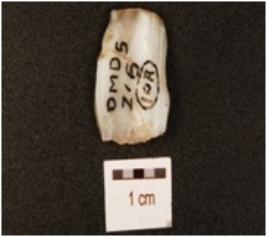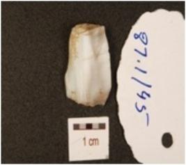 | Description / विवरण | A chalcedony scraper, flake scars on the surface, negative bulb on the ventral side and cortex on surface. |