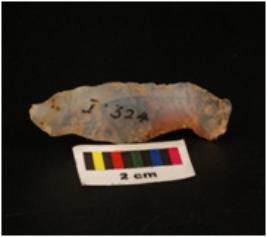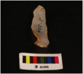| Description / विवरण | Microlithic blade with use-wear marks on cutting edge and prominent ridge on dorsal, bulb on proximal end. |