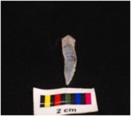 | Description / विवरण | Pen knife blade, made up of chalcedony stone, ridge on dorsal surface, vental surface is smooth, one end is pointed and use wear marks on edge. |