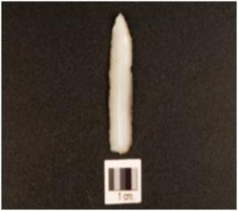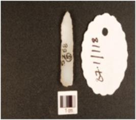 | Description / विवरण | A chalcedony end scraper on blade, ridges and flake scars on surface, use marks on cutting edge and triangular cross-section. |
