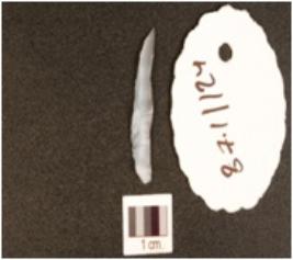| Description / विवरण | A chalcedony point flake scars on surface, use marks on cutting edge and plano convex cross-section. |