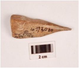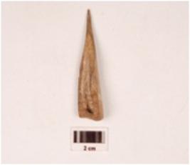 | Description / विवरण | A point made on bone, polished surface and slightly broken pointed tip. |