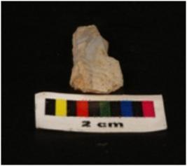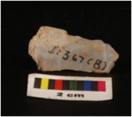| Description / विवरण | Parallel sided microlith blade with use wear marks on cutting edges, ridge and blade scars on dorsal surface, prominent bulb on proximal end, broken distal end |
