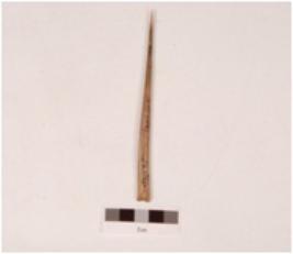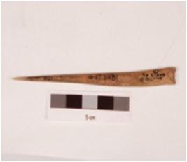 | Description / विवरण | A point made on bone, rectangular in cross section, polished surface and tip intact. |