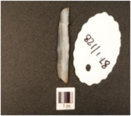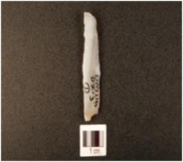 | Description / विवरण | A chalcedony point, flake scars on surface and wear marks on working edge. |
