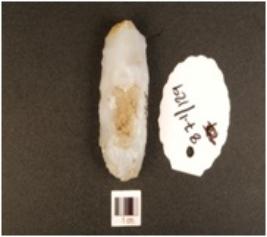 | Description / विवरण | A chalcedony core nodule, flake scars on surface, plano-convex cross-section and use marks on cutting edge. |