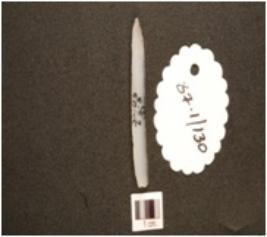 | Description / विवरण | A chalcedony point, two ridges and flake scars on surface, use marks on cutting edge and triangular cross-section. |