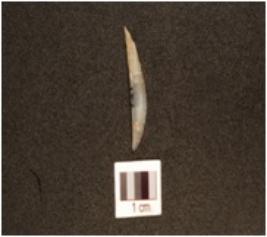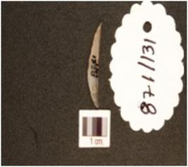 | Description / विवरण | A chalcedony lunate, flake scars and ridges on surface, use marks on one side working edge. |