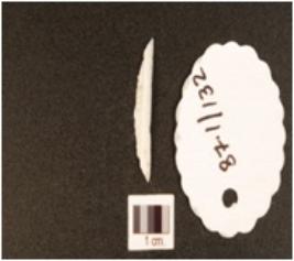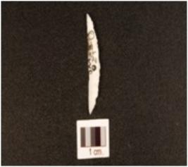 | Description / विवरण | A chalcedony lunate, one ridge on surface and use marks on one side working edge. |