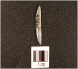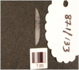 | Description / विवरण | A chalcedony lunate, flake scars and ridges on surface and use marks on one side working edge. |