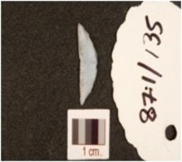 | Description / विवरण | A chalcedony lunate, flake scars on surface and use marks on one side working edge. |