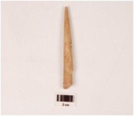 | Description / विवरण | A point made on bone, tip broken, polished surface and tapering towards the end. |