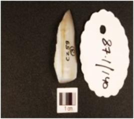 | Description / विवरण | A chalcedony point flake scars on the surface, pointed on one end and triangular cross section. |