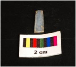 | Description / विवरण | Flake scar on the dorsal surface, retouchings on the working edges both the proximal distal ends are broken. |