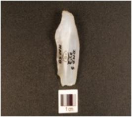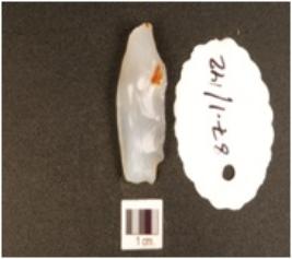 | Description / विवरण | A chalcedony point flake scars and ridges on the surface and sharp cutting edge. |