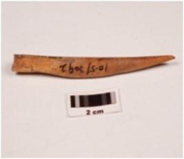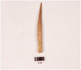 | Description / विवरण | A point made on bone, rectangular in cross section, polished surface and tip slightly broken. |