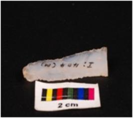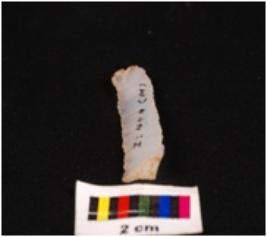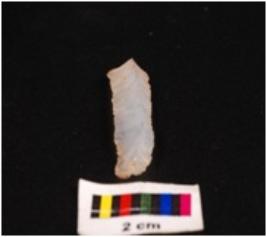 | Description / विवरण | Parallel side blade made up of chalcedony stone, ridge on the dorsal surface, ventral surface is smooth and use wear marks on edge. |