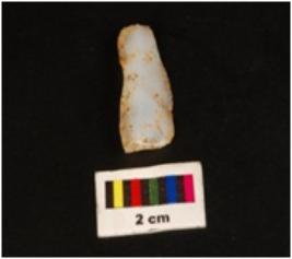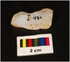 | Description / विवरण | One sided blade, prepared platform on proximal end. Used wear marks on working edge. Flake scar present on dorsal part. |