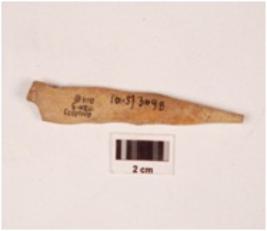| Description / विवरण | A point made on bone with rectangular in cross section, polished surface and tip broken. |