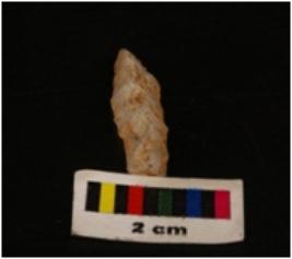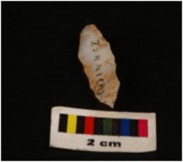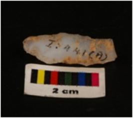 | Description / विवरण | Microlithic blade with use wear marks on cutting edges, blunt mid-ridge on dorsal, bulb on proximal end |