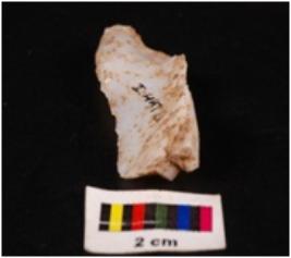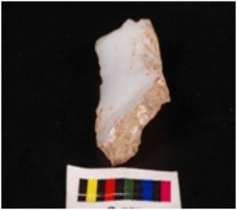 | Description / विवरण | Chalcedony blade made from unprepared core, cortex and bulb of percussion visible, distal end broken and regularly retouched edges. |