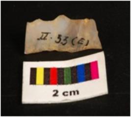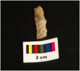 | Description / विवरण | Broken chalcedony blade on both proximal and distal ends, flake scars are seen in the dorsal part, retouches visible on working edges. |