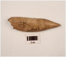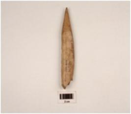 | Description / विवरण | A bone point with one end pointed rubbing polished surface other end thick and broken |