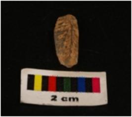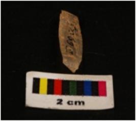 | Description / विवरण | Microlithic blade with use-wear marks on cutting edges, prominent mid-ridges on dorsal surface, bulb on proximal end with triangular section. |