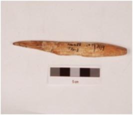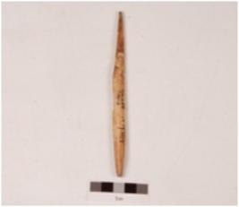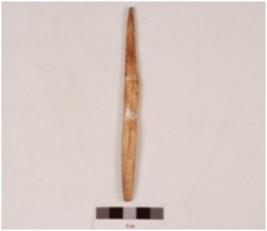 | Description / विवरण | A point made on bone, rectangular in cross section, polished surface, broken and mended. |