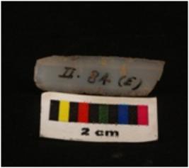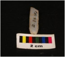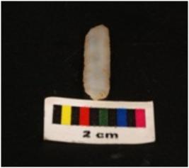| Description / विवरण | Parallel sided microlithic blade with use-wear marks on cutting edges and two prominend ridges on dorsal surface, prominent bulb on proximal end trapezoidal in section. |