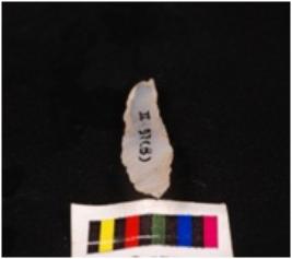 | Description / विवरण | Parallel sided blade, with one convex teeth like and another straight sharp edge, retouched vetical ridge on dorsal surface, concave ventral surface, intact proximal and distal end, pointed towards distal end, prominent use-wear marks. |
