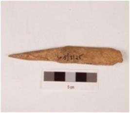 | Description / विवरण | A point made on bone, polished surface, rectangular in cross section and tip slightly broken. |