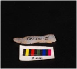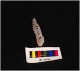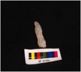 | Description / विवरण | Pen knife blade made up of chalcedony, ridge on dorsal surface, and ventral surface is smooth, one end is pointed, edges are retouched. |