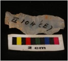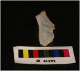 | Description / विवरण | Chalcedony parallel sided blade with a double ridge, regularly retouched edges, deta-ched from one side. |
