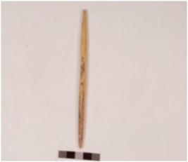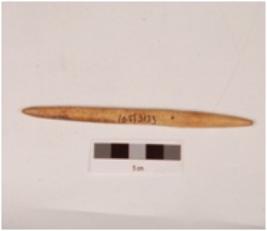 | Description / विवरण | A knitter on bone, tapering towards both ends, circular in cross section, polished surface and tip partly broken. |