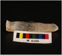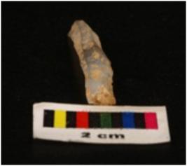 | Description / विवरण | Chalcedony parauel sided blade with a double ridge, triangular sections. |