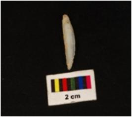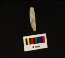 | Description / विवरण | Blade with a retouched working edges, one side convex, other side straight. Striking platform visible from the proximal end. Distal end pointed. |