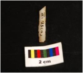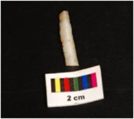 | Description / विवरण | Parallel sided blade with ridge in dorsal side, use wear marks along the working edges. Broken at both dorsal and distal ends. |