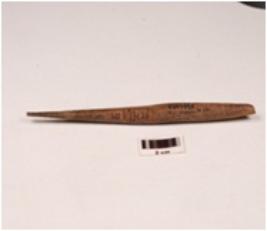 | Description / विवरण | A knitter made on bone, circular in cross section, tip broken and polished surface. |