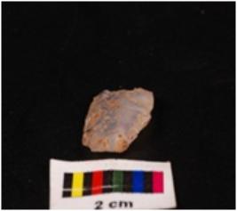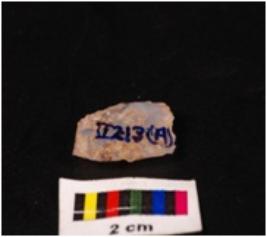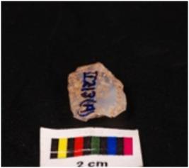 | Description / विवरण | Chalcedony blade with double ridge on dorsal side, ripples on veritcal side and use wear marks on the cutting edges. |