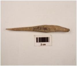 | Description / विवरण | A bone point with pointed one end other end flat polished surface |
